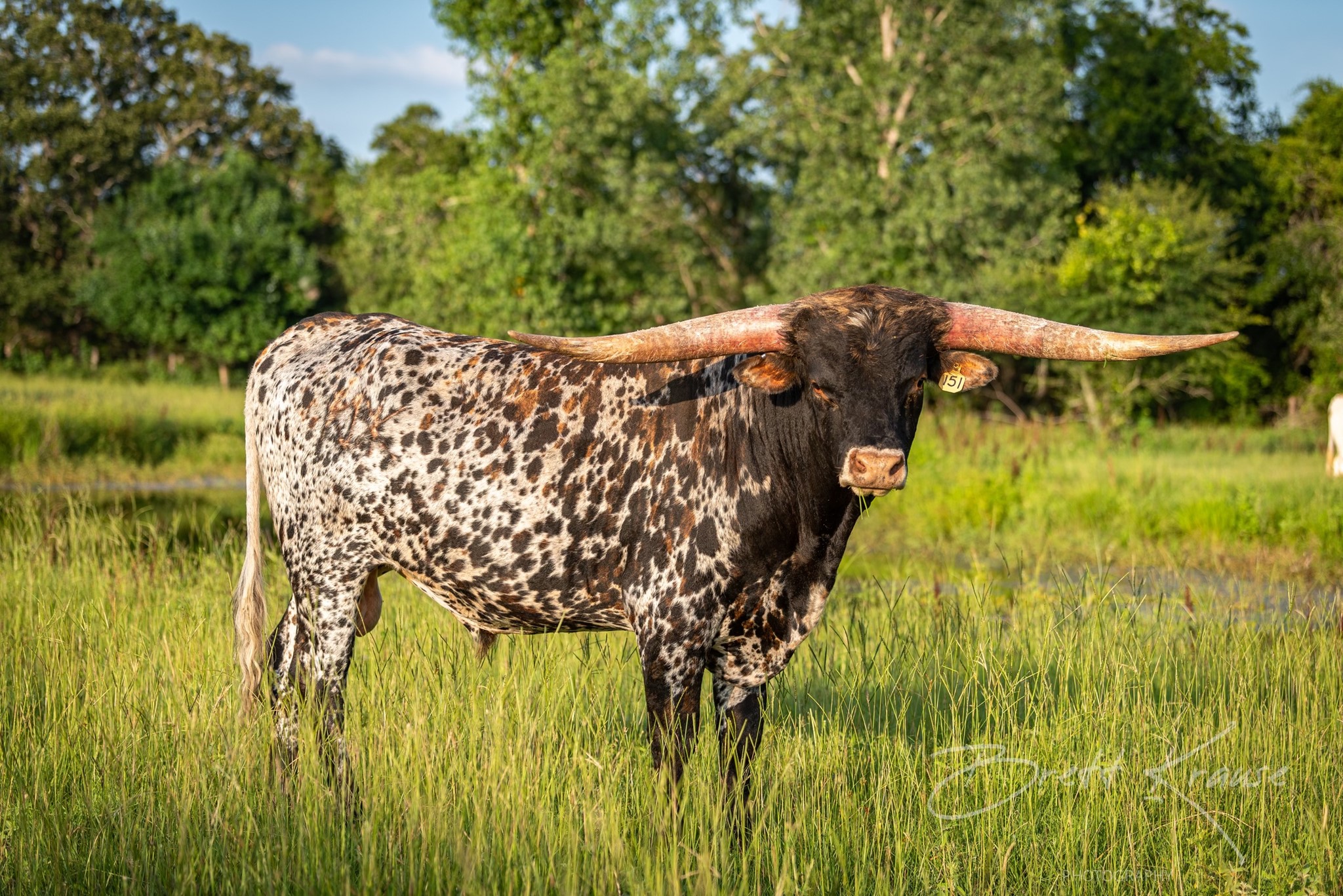 Thor is the most colorful calf we've ever had and he has a royal pedigree. He has a lot to live up to - both of his older full sisters have won Horn Showcase bronzes. Thor's dam, Sweet Magnolia, measures 100” ttt and has won Horn Showcase bronzes for four consecutive years.